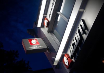 LED trough lights were chosen to illuminate the flat cut text and bevel cut acrylic logos across the fascia. In addition, internally illuminated projecting signs provide further brand visibility.