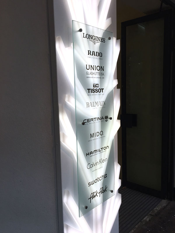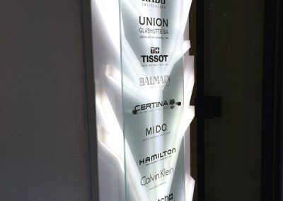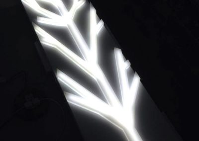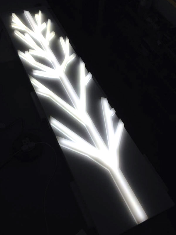 Utilising a thick opal acrylic that was router cut to shape we then used LED illumination and pre-mounted all the elements onto powder coated trays, making it a simple system to install and remove from site when they were no longer needed.