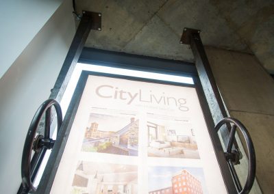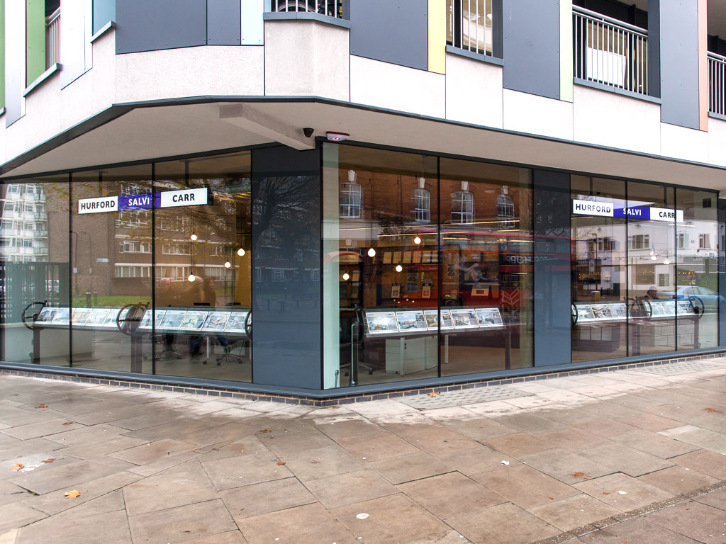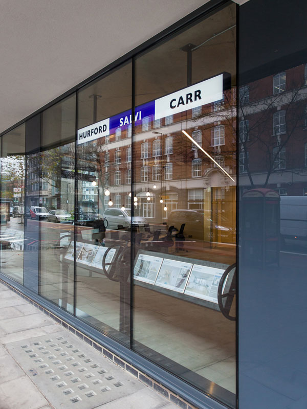 Camberley Signs worked closely with MPL Interiors and acclaimed architect Danny Shafrir to develop and create a very unique and distinctive working space within Hurford Salvi Carr’s London based estate agent. The design intent for the window displays was based on inspiration from old industrial machinery and in particular hand operated rolling mangles.