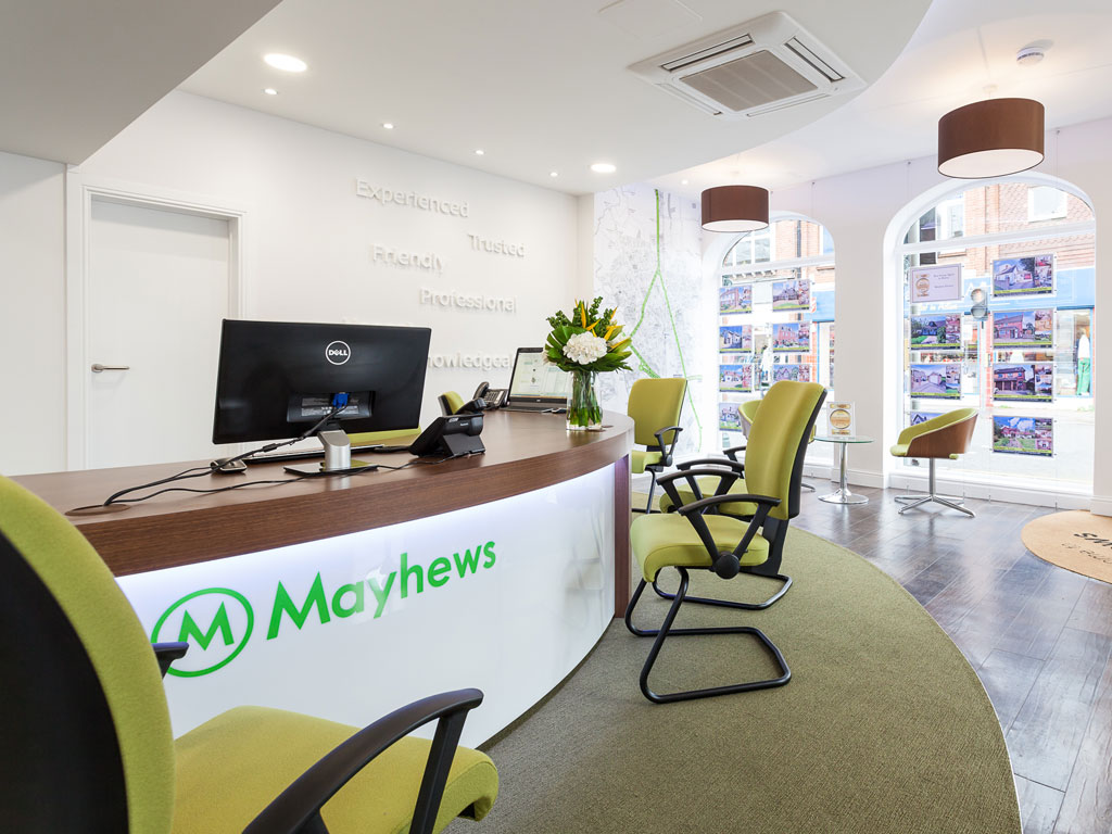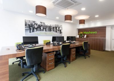 Camberley signs were called upon to produce bespoke desks, counters and illuminated window displays for Mayhew’s Estate Agents.
