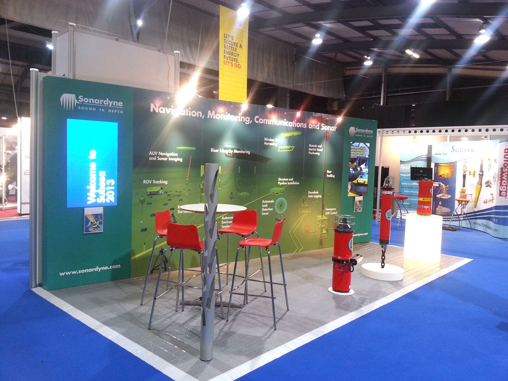 Camberley Signs regularly get involved with developing exhibition stands for Sonardyne. From supplying the printed graphics to engineering acrylic stands to showcase their Deep sea exploration equipment. We have even been known to build scale models of their submersible crafts and research equipment.